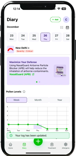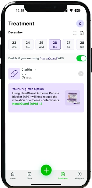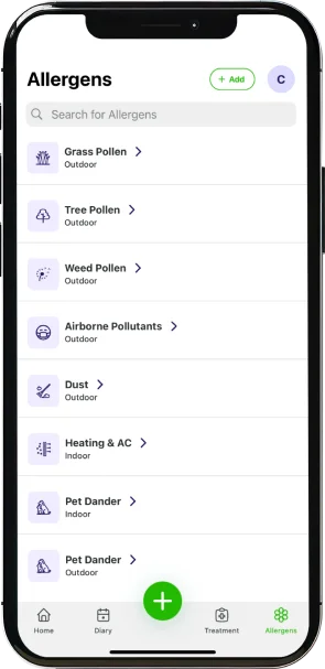 La Puntuación de Control de Alergias se calcula utilizando los síntomas registrados y datos ambientales en tiempo real. AllerAid rastrea: